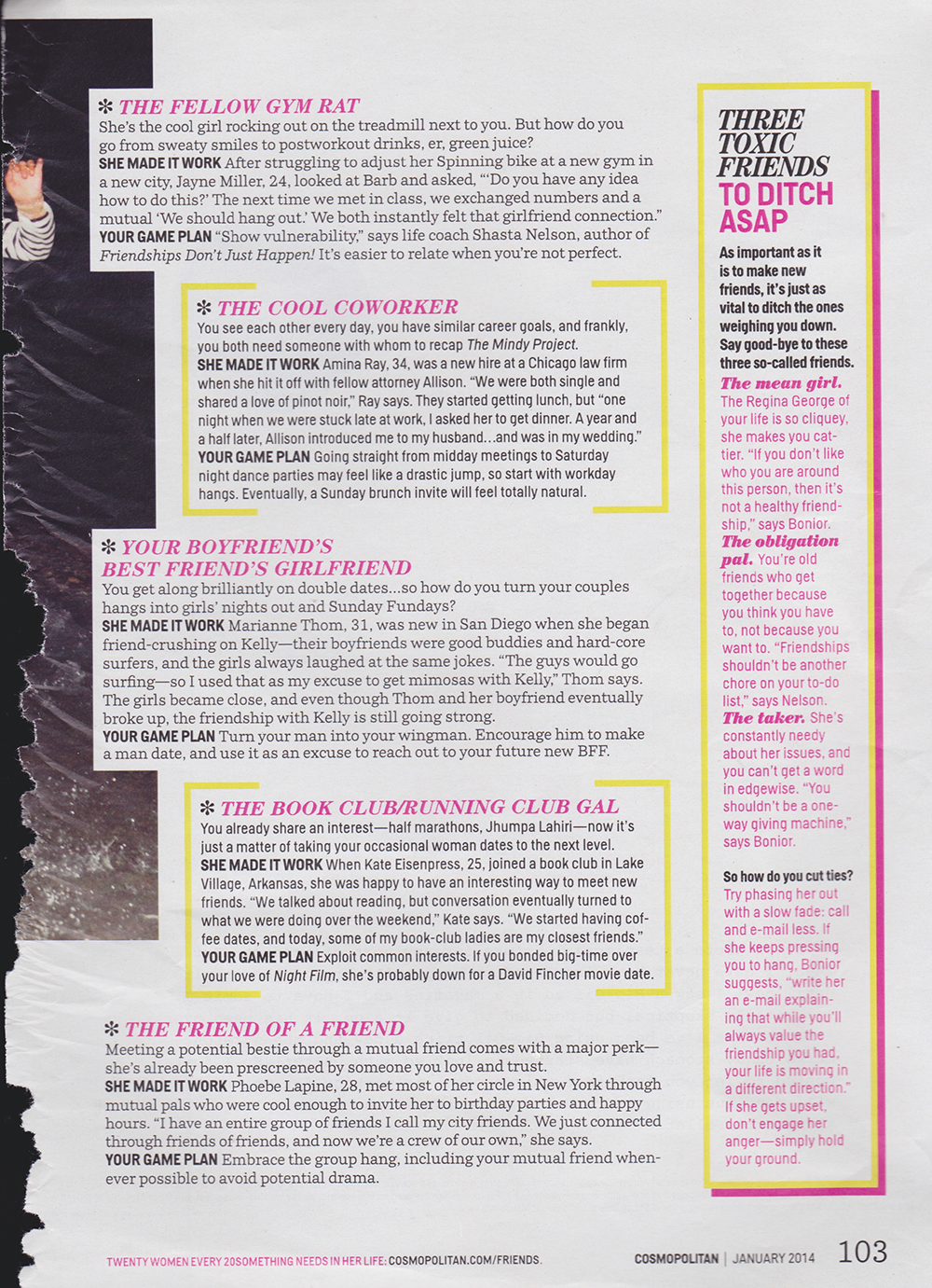 Cosmopolitan: Refresh Your Friendventory View fullsize View fullsize JournalismRachel BertscheJanuary 8, 2014Cosmopolitan, Relationships Facebook0 Twitter Pinterest0 0 Likes